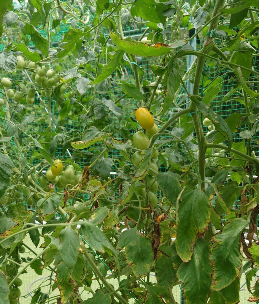 今日、明日は収穫を見送り、より色付かせてみようと思います。もう10日ほどで天井付近も枝葉で一杯に成ってしまいそう。なので、行き場のない枝から摘芯し始めてます。